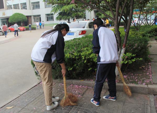 学校环保协会与青年志愿者协会的师生利用课余时间,手拿扫帚、夹子等卫生工具,扫除校园道路上的落花,清除堆积在墙角的杨柳絮团,捡拾绿化带里的枯叶。志愿者们干劲十足,广大师生深受感染带动,许多人自觉加入到行动中来,共同为创建美丽校园、健康校园献出他们的力量。